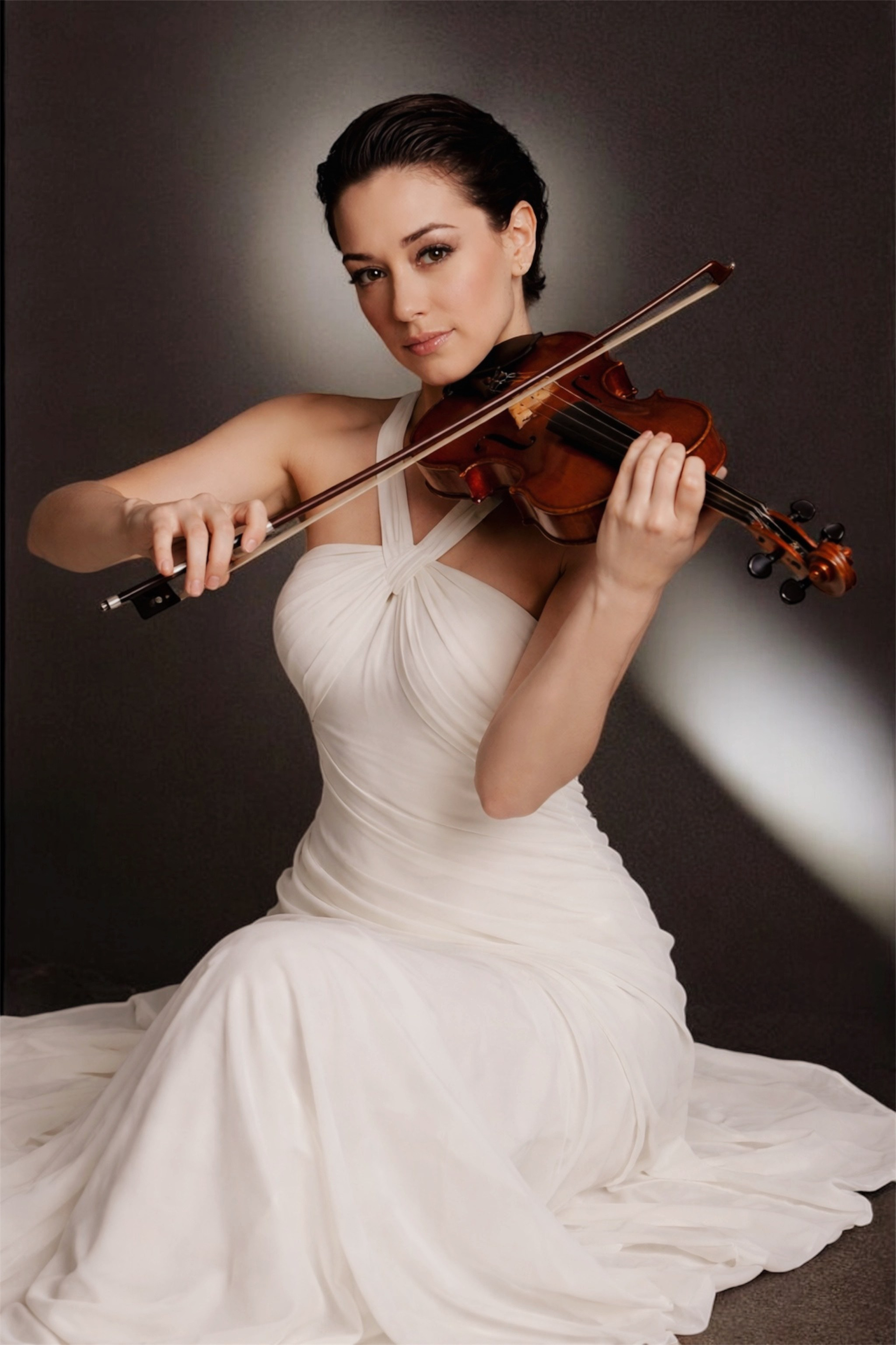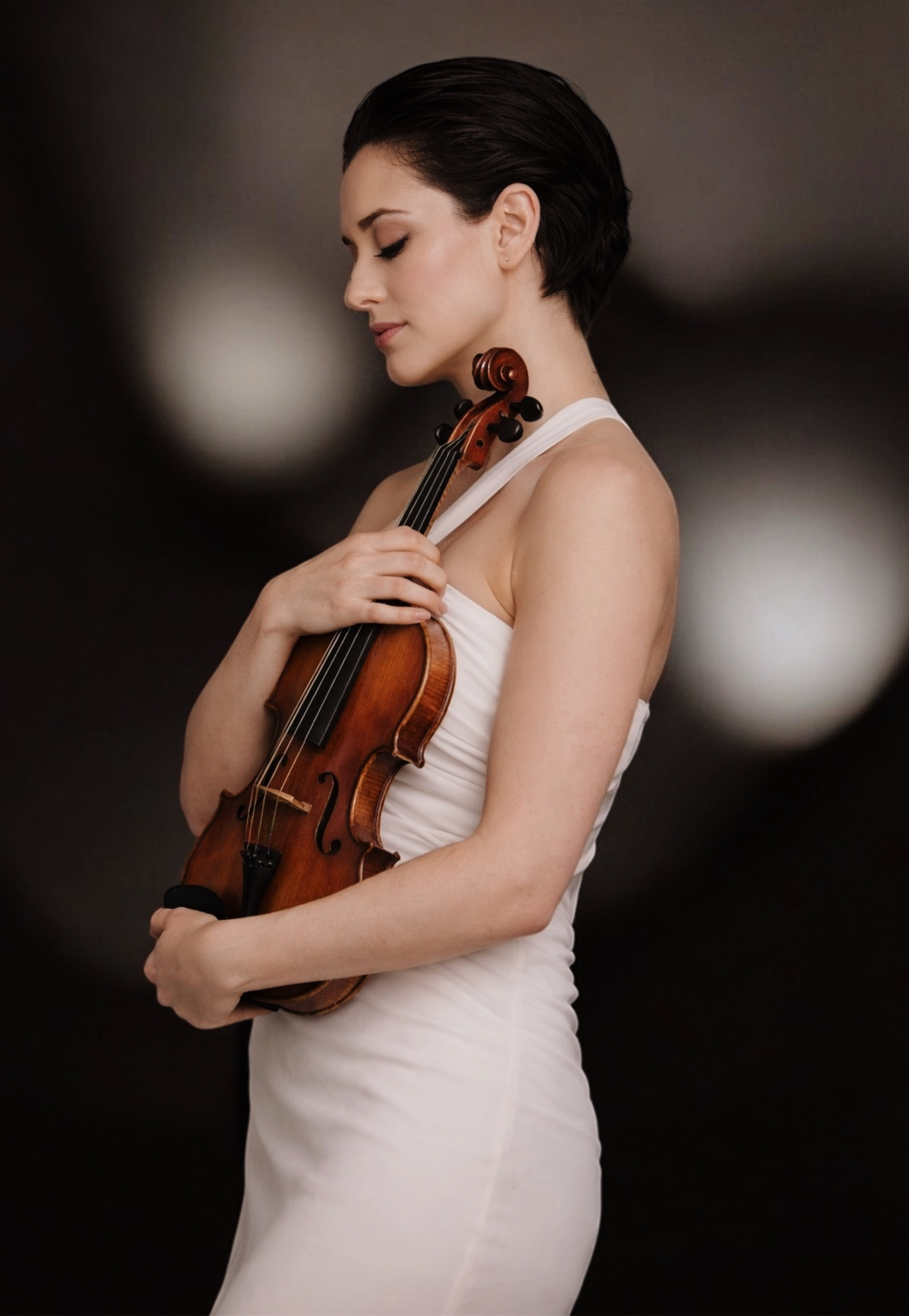 In albul acela imaculat, muzica nu mai e sunet, ci o atingere intre lemnul cald si pielea infiorata. Este clipa aceea sacra in care artista si instrumentul devin un singur trup fragil. O imbratisare muta care spune ca frumusetea cea mai mare se naste din grija de a nu tulbura o armonie atat de delicata. In ochii ei se citeste adevarul pur: muzica este o oglinda a sufletului, iar ea este gata sa se piarda in ea pentru a gasi acea nota perfecta, plina de lumina.